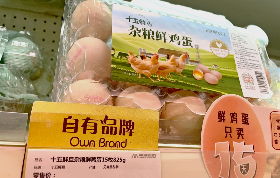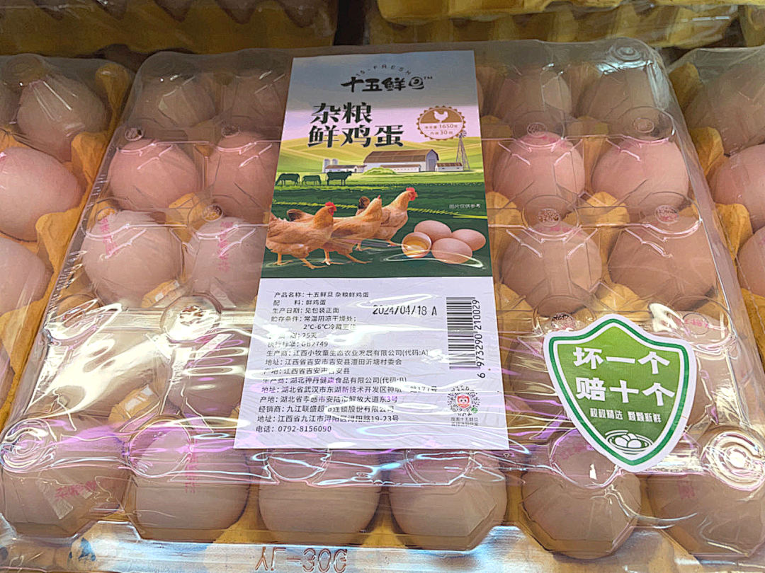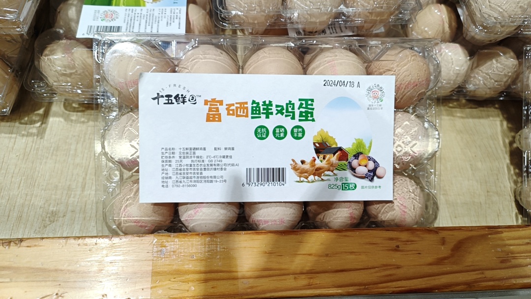 对于联盛超市来说,一枚鸡蛋,从生产到售出,每一环都至关重要,每一环都关系着顾客的消费体验。因此在售卖阶段联盛超市依然不肯松懈,及时查看鸡蛋生产日期,定期对货架上的鸡蛋进行调整更换,确保顾客买到的始终是新鲜优质的蛋品。“针对自有品牌十五鲜旦,我们的理念是十五鲜只卖十五天”,联盛超市生鲜业务部经理但玲玲说道。十五鲜旦作为一款富硒蛋品,富含更多人体必需有机硒元素,对人体健康起到改善作用,营养吸收效果也更佳。