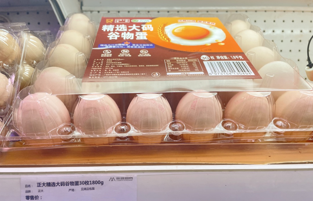 为了让顾客更加方便地选择和购买鸡蛋,联盛超市对鸡蛋也进行了细致的分类和排列,不同品种、不同规格的鸡蛋一目了然,让顾客放心选择,称心购买。针对自有品牌十五鲜旦30枚装,联盛超市还提出“坏一个,赔十个”口号,这既给顾客消费提供了保障,同时也彰显了联盛超市的选品高标准。
