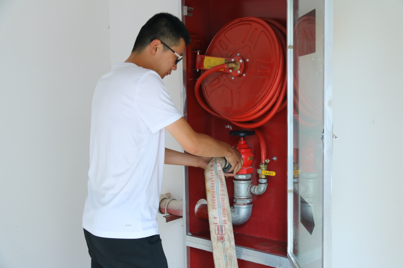 比赛不容放松,正如消防安全不可懈怠!在完成比赛第一步后,选手们迅速奔向消防栓开始比赛第二步,只见一人将接头接入栓口,一人将接头连接水枪,并向“起火点”跑去,另外一人则紧随“救火人员”迅速铺开水带……整套动作行云流水,三人小组在极短的时间内就完成了“灭火”,实在称得上是为联盛“风火侠”。