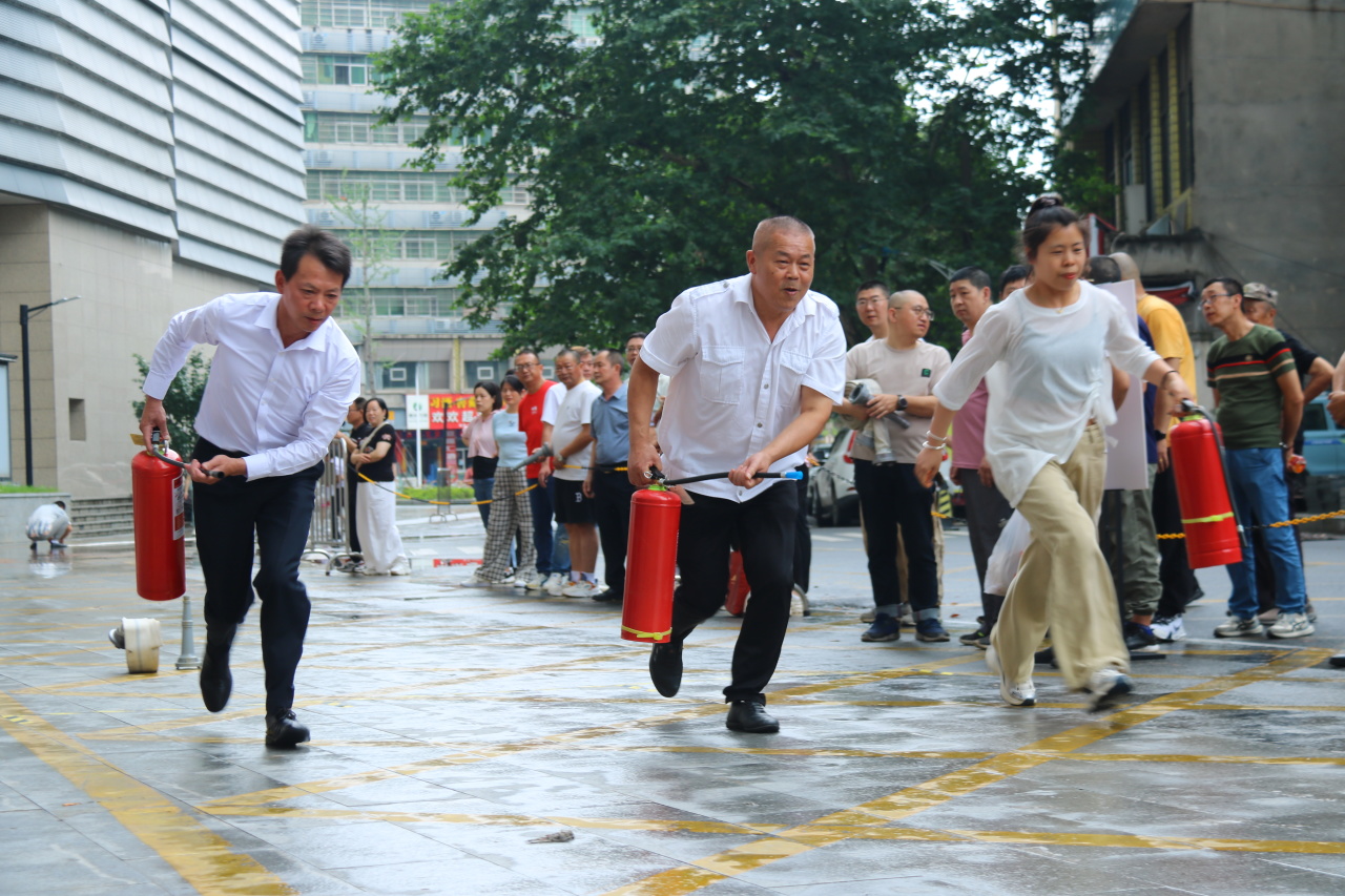 理论加深意识,实操锻炼成果。下午2时,实操比武进入竞赛阶段,为了达到更好的配合效果,提高团队效率,每支代表队早已提前做好了分工准备。随着一声哨响,比赛正式开始。参赛队伍三人一组,默契十足,同步而出,各自提起灭火器迅速冲向“假设失火点”。他们步伐坚定,动作迅速,“提、拔、握、压”一气呵成,仅十秒左右就完成了比赛的第一步。