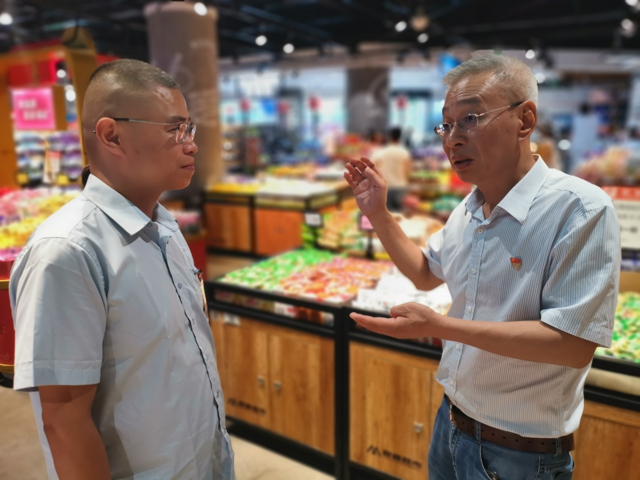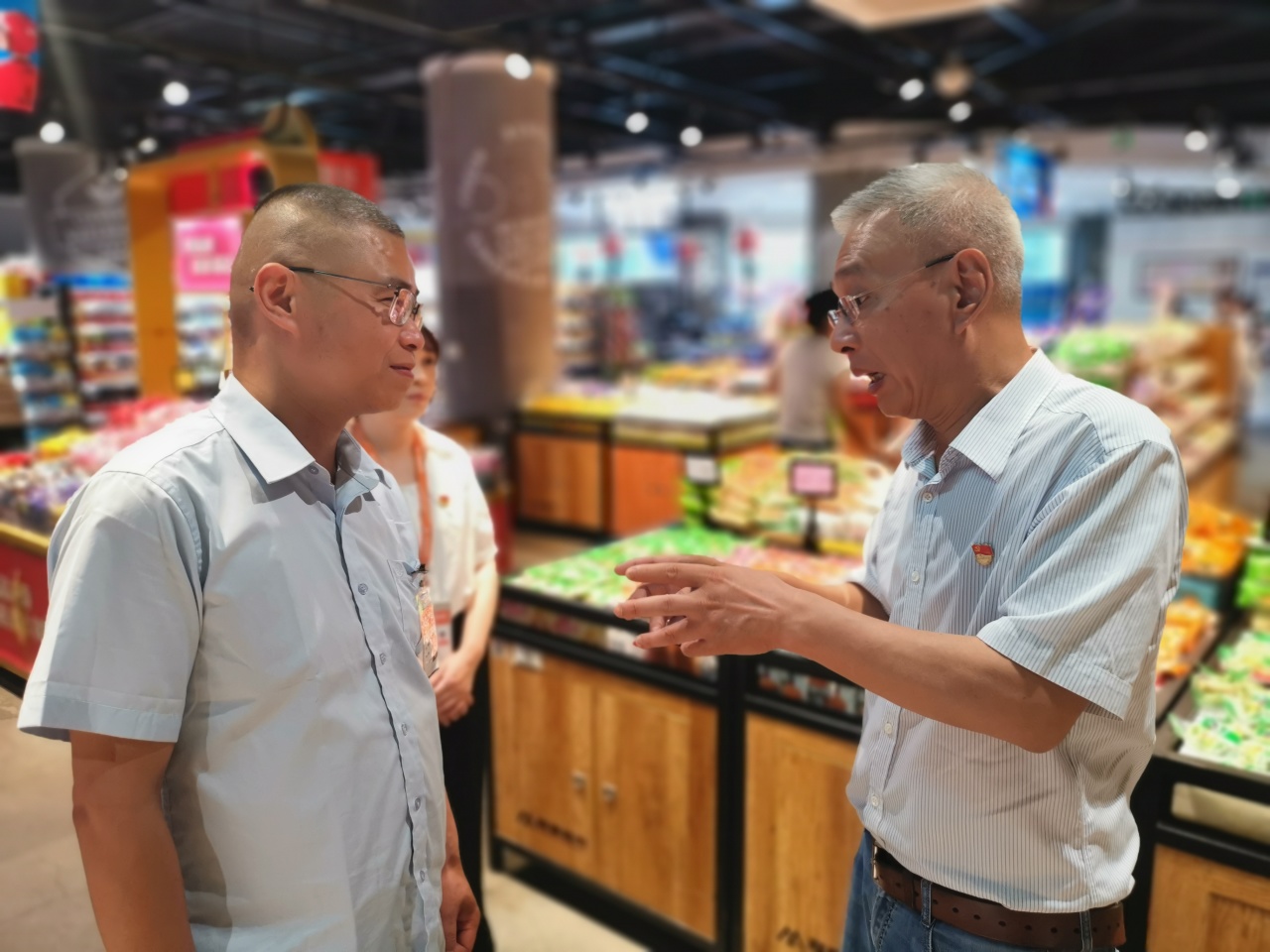 陈刚向坚守在一线工作岗位的党员致以节日问候,同时了解门店经营情况,叮嘱党员用心用情做好服务、管理工作,更好满足消费者需求。陈刚与门店党员交流时指出,董事长高度重视文化和经营理念的创新,强调以人为本,共建共享。公司党员当前工作重心就是要践行新发展理念,创造新消费体验,推动高水平经营,实现可持续发展,必须进一步加强党组织建设,确保企业文化和经营理念的创新取得更大成效。从物质的丰盈、情绪的满足与心灵的共鸣,为顾客创造的独一无二的消费体验。